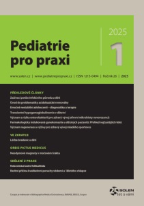 www.pediatriepropraxi.cz PEDIATRIE PRO PRAXI 3 SLOVO ÚVODEM Lakování narůžovo aneb přestaňmeve správný okamžik lakovat Lakování narůžovo aneb přestaňme ve správný okamžik lakovat Chtěli bychom se podělit o pohled rodičů s profesemi dětské lékařky a psycholožky. Eufemismy mohou usnadnit vyjadřování a asi každý z nás je občas použije. Na druhou stranu lakovat narůžovo vše a vždy nelze. Nejmenší děti jsou námi rodiči chráněny před nepříznivými situacemi a věcmi: hladem, chladem, mokrem v plenkách atd. A samozřejmě si takové ochraňující a pečující chování v nejútlejším věku zaslouží a je pro ně zdrojem vnitřního pocitu bezpečí, který si nesou do dalšího života… Potřebují také komunikaci zábavnou i učící… jak to všichni známe. Odměnou nám je zpětná vazba v podobě spokojeného zdravě se vyvíjejícího dítěte. Zde chceme upozornit na jeden aspekt výchovy – učení a výchova slouží mimo jiné k rozvoji odolnosti a orientaci ve světě. Psychologové poměrně přesně vědí, jak se resilience u dítěte rozvíjí: souvisí s odolností rodiny i zdravým, aktivním vývojem v raném věku. Po zajištění bezpečí a základních potřeb v kojeneckém věku následuje v batolecím období budování autonomie, kdy rodiče pokládají základ vůli dítěte. Období hry v předškolním období rozvíjí iniciativu dítěte. V mladším školním věku je vývojovým úkolem zařazení do vrstevnické skupiny a posílení vnímání vlastní kompetence. Mnohé ze současných dětí však neumí zvládat ani běžné nepříznivé situace. Opravdu velké výzvy jsou zcela mimo jejich možnosti. Některé děti se přestaly umět na něco těšit. Mnohé žijí v neúplných rodinách, zažívají rozvody rodičů se všemi komplikacemi, v případě rodin s jedním dítětem neznají komunikaci se sourozenci. Dalším problémem jsou informace na sítích, které mohou kontrastovat s realitou a jejich zpracováváním. Prožívání dětí je tak zaplaveno mnoha vnějšími podněty, které je často obtížné zpracovat. Upozorňujme rodiče na resilienci a nutnost jejího postupného budování. Ať dětem včas přestanou lakovat narůžovo, že stačí jen natáhnout ruku… a silně křičet… v každém věku. Není to jednoduché, ale je to nutné a zdravé. Jednoduchý návod není. Může pomoci pozornost: společné reálné aktivity mimo dosah sítí, hry, sport, učení, práce hrou – lépe venku, optimálně v přírodě. Aktivní činnosti včetně dělání chyb. Aktivní, byť chybující rodič je lepší než netečný. Povinnost, odpovědnost a kázeň, podepřené základní důvěrou ve schopnosti dítěte, představují osvědčené pilíře odolnosti. Myslíme, že málo odolnosti stojí za nevídaným nárůstem psychologických a psychiatrických potíží, se kterými se v našich praxích potkáváme. Přejeme vám a dětem, o které společně pečujeme, krásný aktivní rok 2025. prof. MUDr. Kateřina Bouchalová, Ph.D., Mgr. et Mgr. Martina Friedlová, Ph.D. Olomouc PEDIATRIE PRO PRAXI ROČNÍK 26, 2025, ČÍSLO 1 TIRÁŽ Předseda redakční rady: prof. MUDr. Vladimír Mihál, CSc. Místopředseda redakční rady: prof. MUDr. Zdeněk Doležel, CSc. Redakční rada: doc. MUDr. Kateřina Bouchalová, Ph.D., MUDr. Jan Boženský, doc. MUDr. Jiří Dort, Ph.D., Mgr. Jaroslava Fendrychová, Ph.D., MUDr. Martin Gregora, MUDr. Josef Gut, MUDr. Nabil El-Lababidi, MUDr. Jan Pajerek, doc. MUDr. Jan Pavlíček, Ph.D., MUDr. Ivan Peychl, MUDr. Luděk Ryba, doc. MUDr. Dalibor, Sedláček, CSc., doc. PhDr. Lucie Sikorová, Ph.D., prof. MUDr. Josef Sýkora, CSc., doc. MUDr. Sylva Skálová, Ph.D., doc. MUDr. Jiřina Zapletalová, Ph.D., doc. MUDr. Jakub Zieg, Ph.D. Širší redakční rada: prof. MUDr. Svetozár Dluholucký, CSc., doc. MUDr. Michal Goetz, Ph.D., MUDr. Nora Hradská, MUDr. Alena Machovcová, MBA, prof. MUDr. Ľudmila Podracká, CSc., MUDr. Jarmila Seifertová, MUDr. Pavol Šimurka, Ph.D., prof. MUDr. Jiří Šnajdauf, DrSc. Vydavatel: SOLEN, s. r. o., Lazecká 297/51, 779 00 Olomouc, IČ 25553933 Adresa redakce: SOLEN, s. r. o., Lazecká 297/51, 779 00 Olomouc tel: 582 397 407, fax: 582 396 099, www.solen.cz Redaktorka: Mgr. Eva Kolbingerová, kolbingerova@solen.cz, tel.: 773 779 632 Grafická úprava a sazba: DTP SOLEN, Aneta Děrešová, deresova@solen.cz Obchodní oddělení: Daniela Stojanovski, stojanovski@solen.cz Charlese de Gaulla 3, 160 00 Praha 6 tel.: 721 603 709 Citační zkratka: Pediatr. praxi. Registrace MK ČR pod číslem E 10014 ISSN 1213-0494 (print) ISSN 1803-5264 (on-line) Časopis je indexován v: EMBASE, EBSCO, Scopus. Články prochází dvojitou recenzí. Vydavatel nenese odpovědnost za údaje a názory autorů jednotlivých článků či inzerátů. Reprodukce obsahu je povolena pouze s přímým souhlasem redakce. Redakce si vyhrazuje právo příspěvky krátit či stylisticky upravovat. Na otištění rukopisu není právní nárok. Předplatné šesti čísel časopisu včetně supplement na rok 2025: ČR: tištěná 1 900 Kč, elektronická 1 140 Kč. Objednávky na www.solen.cz ➜ predplatne@solen.cz nebo 585 204 335.